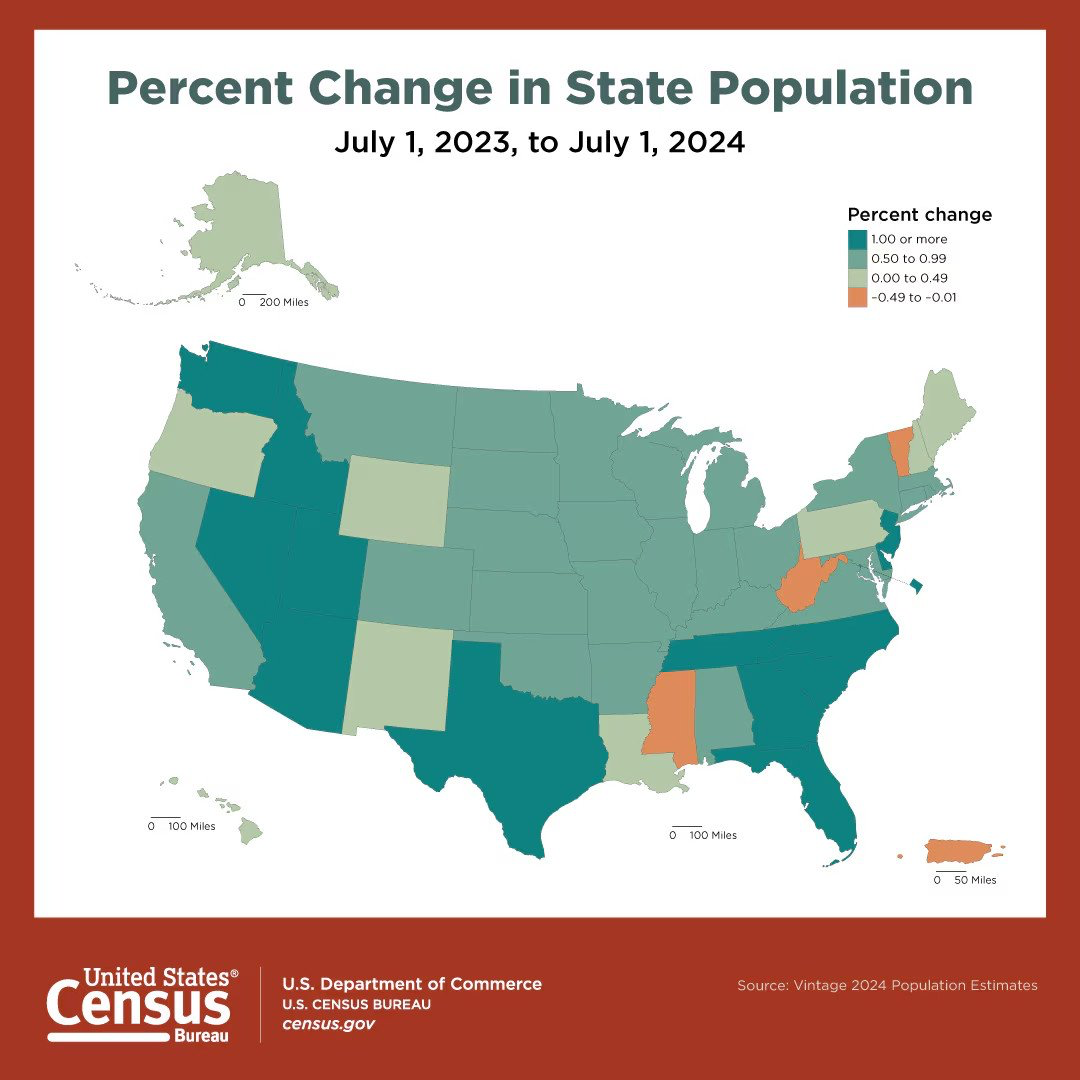 Slowest: Vermont (-0.03%), West Virginia (-0.03%), Puerto Rico (-0.02%), Mississippi (-0.004%), Louisiana (+0.2%)
