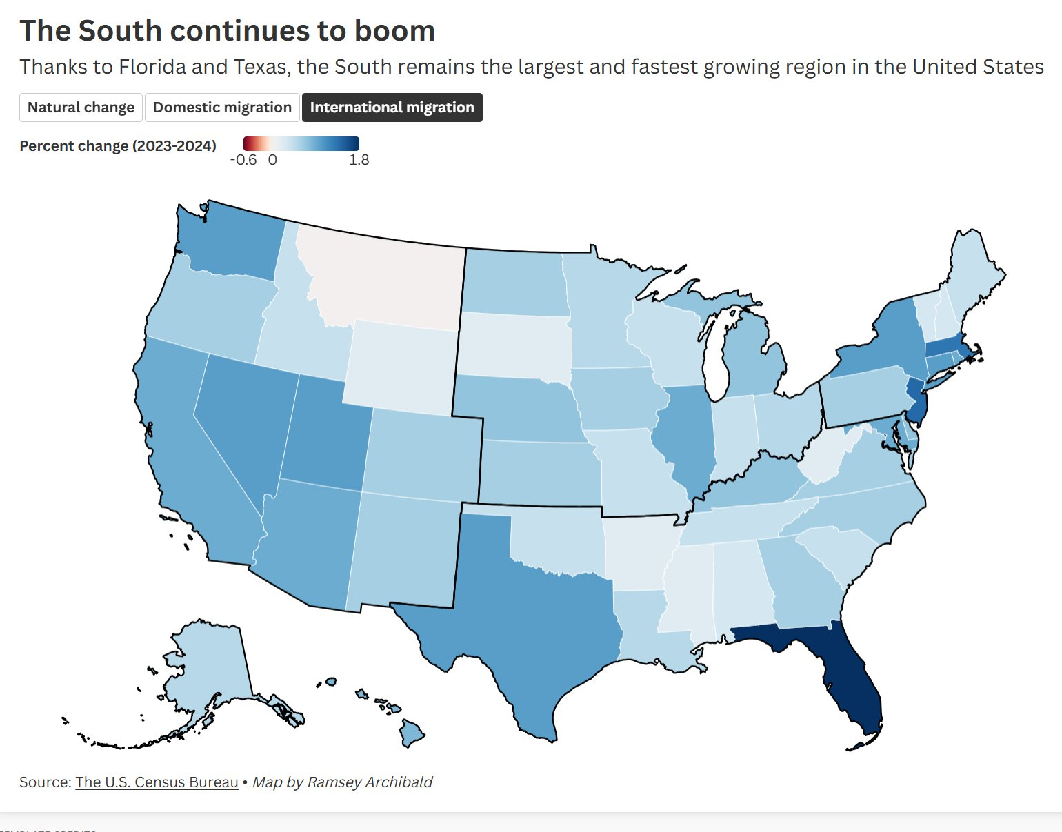 6) Thanks to Florida and Texas, the remains the largest and fastest growing region in the United States: