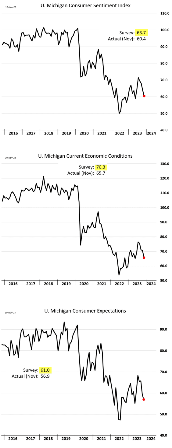 2) Unfortunately, US consumer sentiment declined again:
