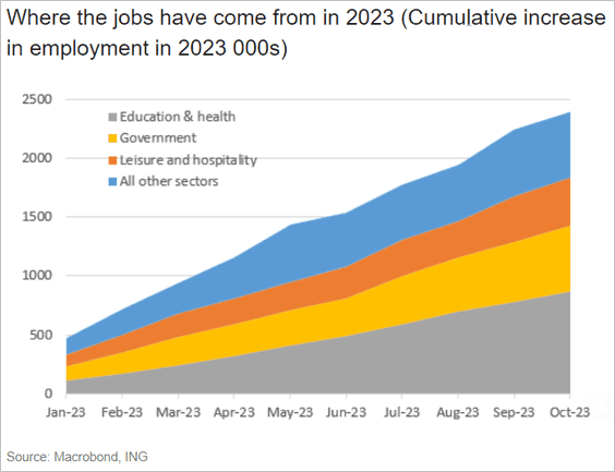 4) Healthcare workers, public school teachers, and restaurant/hotel workers drove a large portion of the job gains this year.
