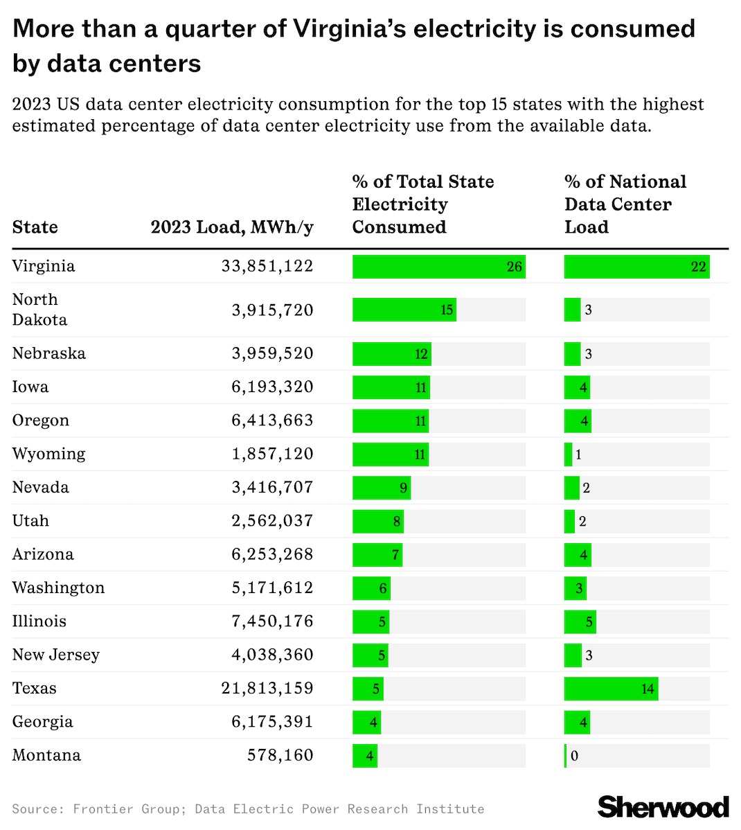 8) According to a new report from think tank Frontier Group, data centers in Virginia -- reportedly home to more than 35% of the world's known hyperscale data centers -- are responsible for a genuinely mind-boggling 26% of the state's total electricity consumption.