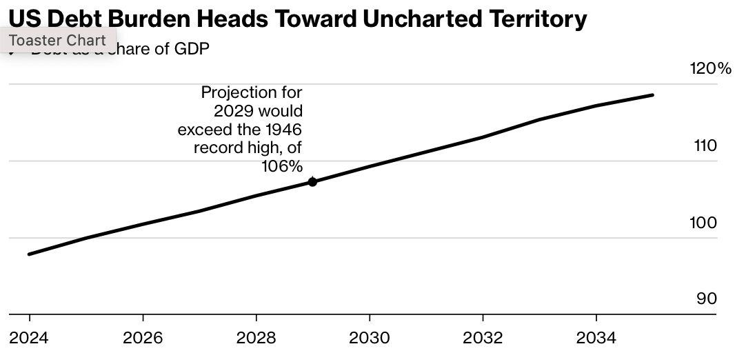 19) US debt is on an unsustainable trajectory: