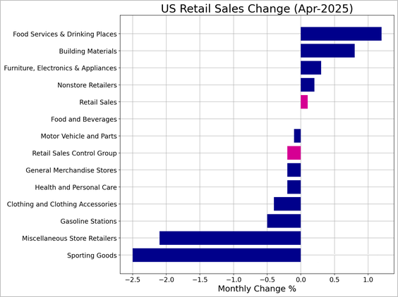 16) U.S. retail sales growth slowed sharply in April as the boost from households front-loading motor vehicle purchases ahead of tariffs faded and consumers pulled back on spending elsewhere against the backdrop of an uncertain economic outlook.