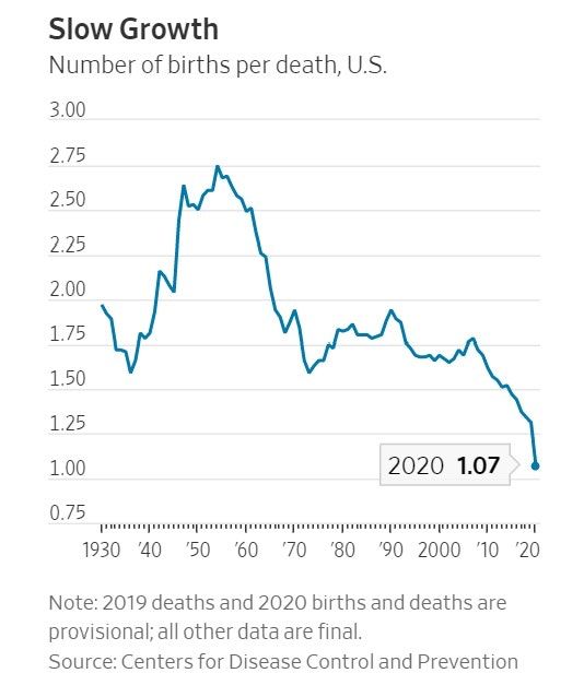 U.S. population growth, an economic driver, grinds to a halt: Covid-19 pandemic compounds years of birth-rate decline, puts America’s demographic health at risk