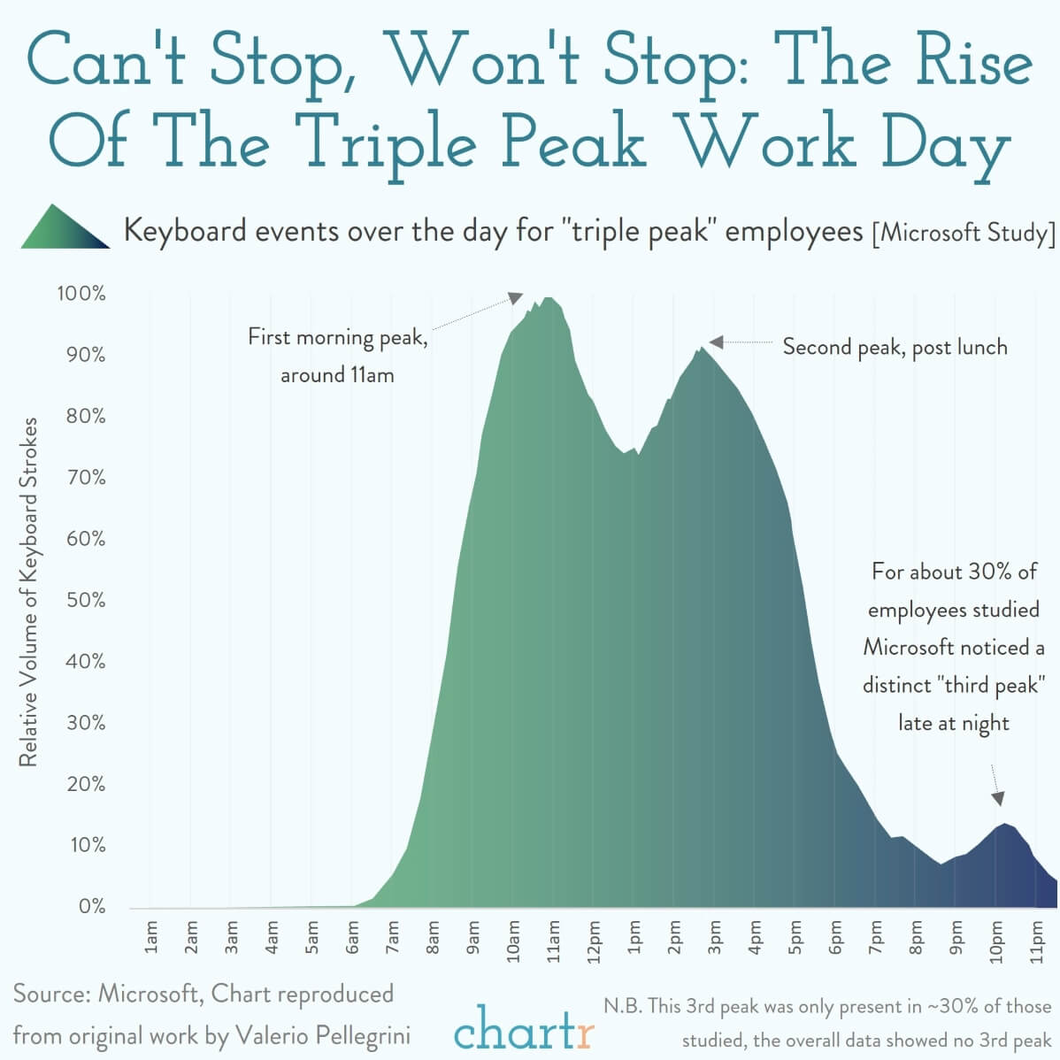 Personally, I have a quadruple-peak workday with another at about 6 AM. What about you?