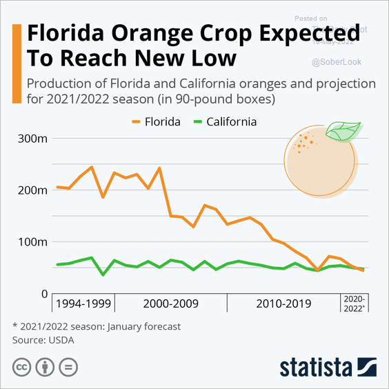 The Florida orange crop report, tech bubbles, baby formula, California is dying of thirst, supply chains, and more.