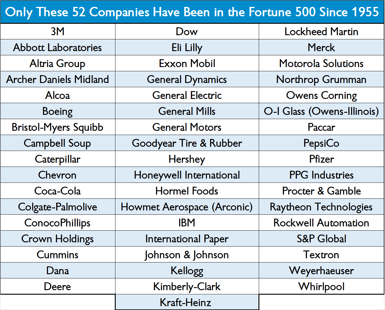 Only 52 US companies have been on the Fortune 500 since 1955, thanks to the ‘creative destruction’ that fuels economic prosperity.