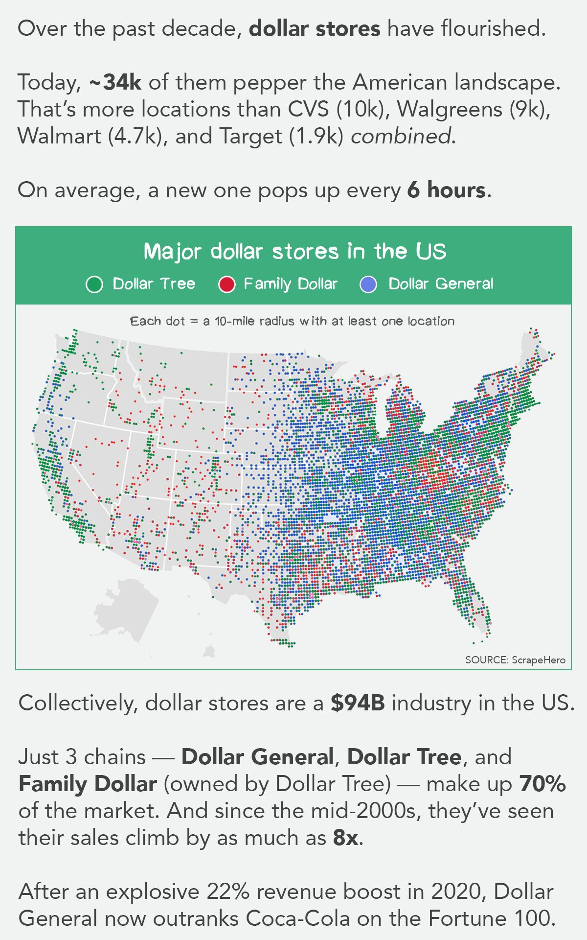 The economics of dollar stores: A visual explainer of the numbers behind America’s ubiquitous bargain-basement chains.