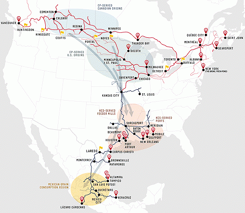 Canadian Pacific-Kansas City Southern merger to create first U.S.-Canada-Mexico railroad, boosting northern grain (and Albertan oil).