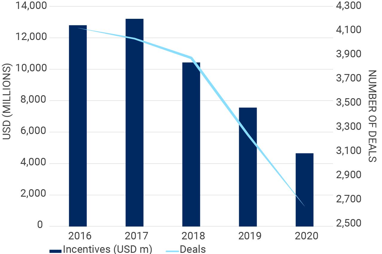 Site Selection Group has released their 2021 economic incentives report. See graph below, plus there are more graphs at the link.