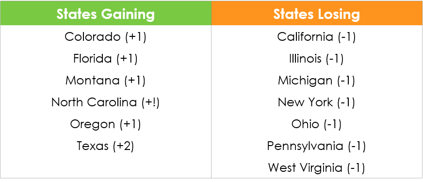 The U.S. Census Bureau has released the initial 2020 Census data, realigning Congressional apportionment.