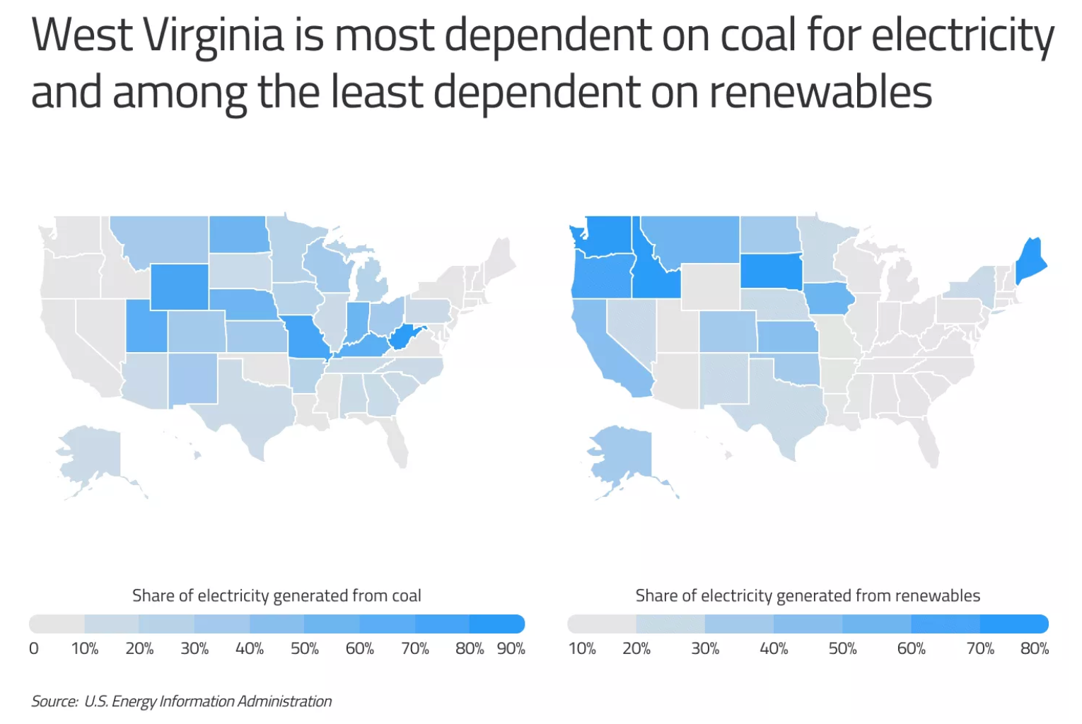 Which US states are still dependent on coal for electricity?