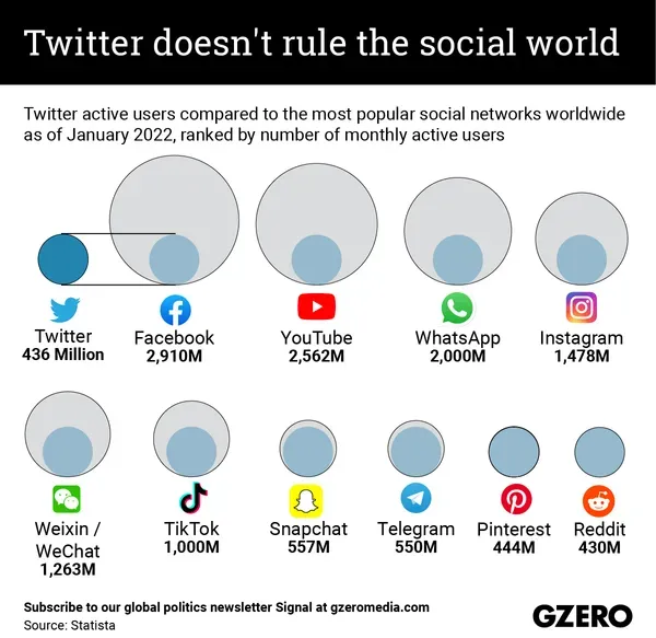 The size of Twitter compared to other social media giants: