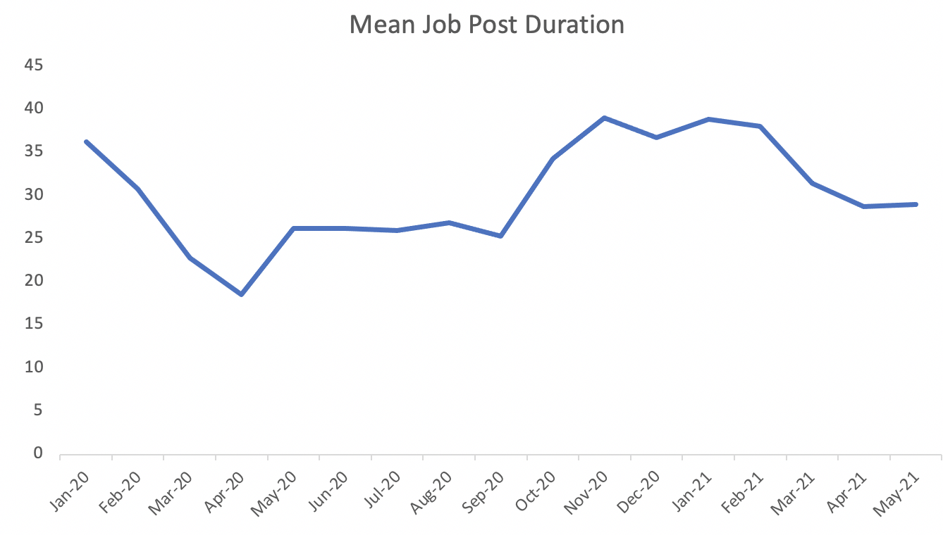 Changes in job post duration due to COVID-19: How many days it takes to fill positions, is an indication of how hard it is for employers to find qualified candidates: