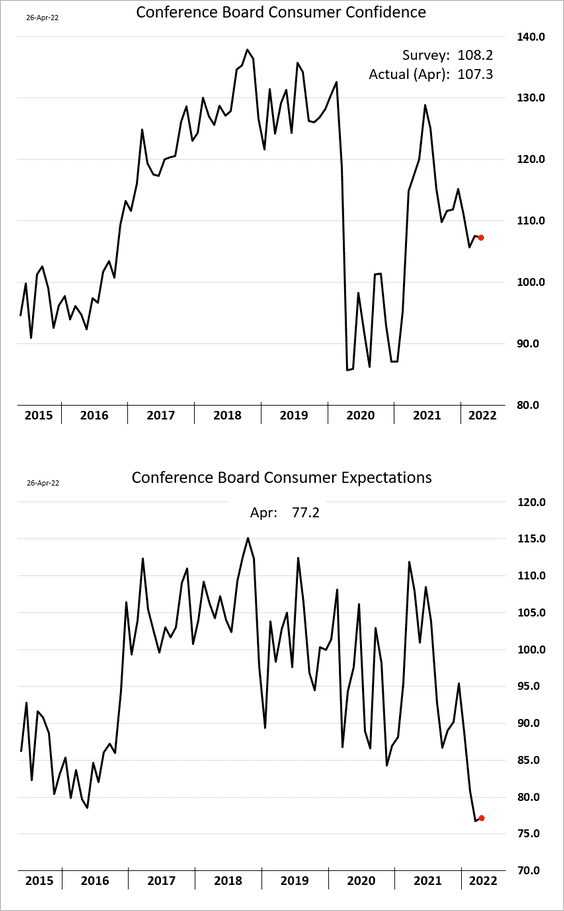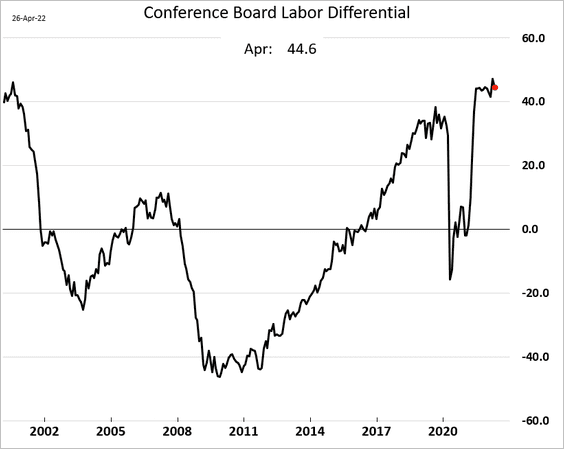 The labor differential is still near the highs, as households remain confident in the jobs market: