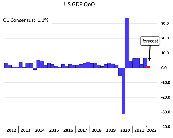 The Q1 GDP growth consensus is 1.1%: