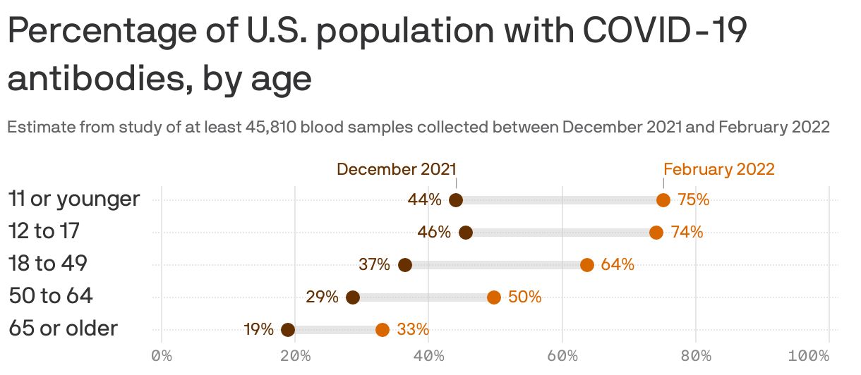 Blood tests show a majority of Americans (roughly 190 million people) — including 3 in 4 children — have been infected with COVID, according to CDC data released yesterday.