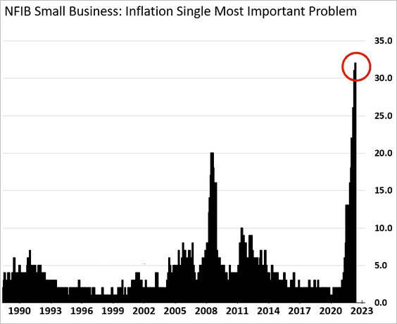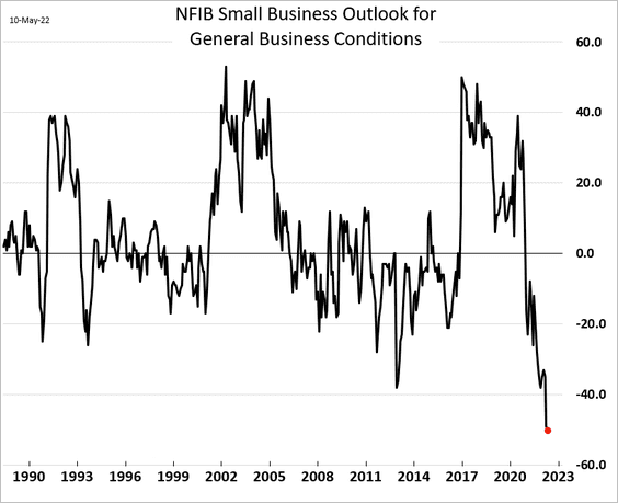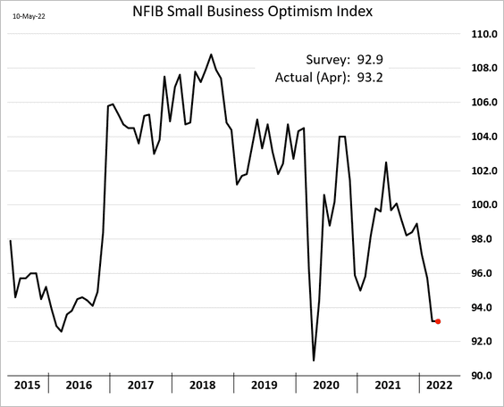 The NFIB small business sentiment index held steady last month (at the lowest level since early 2020):