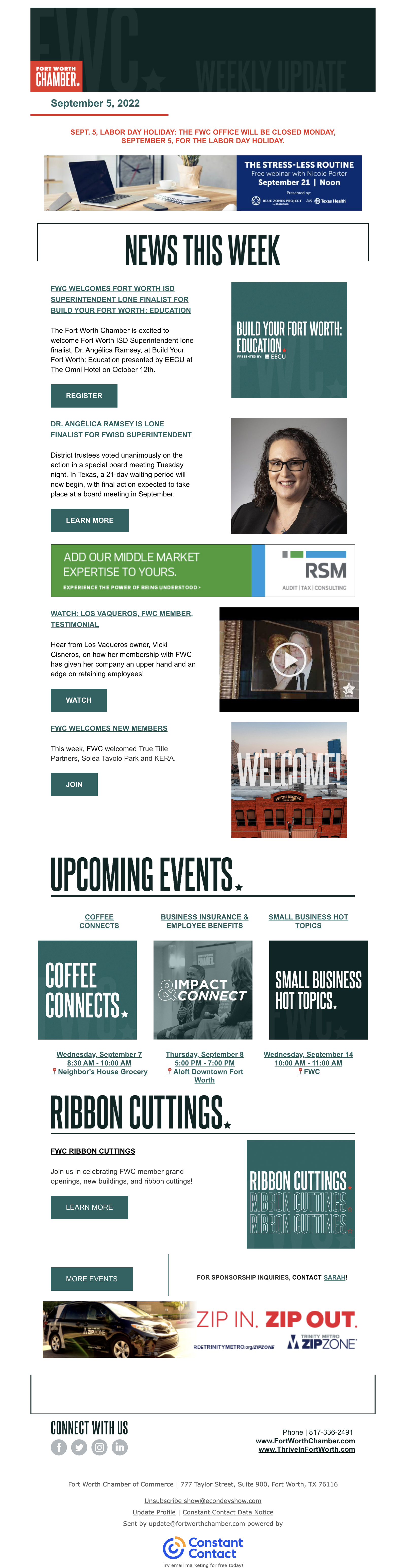 Carlsen Center for Innovation & Entrepreneurship, Fort Collins Business Newsletter, Fort Worth Chamber, Georgina Economic Development & Tourism, Great Falls Development Authority, and more.