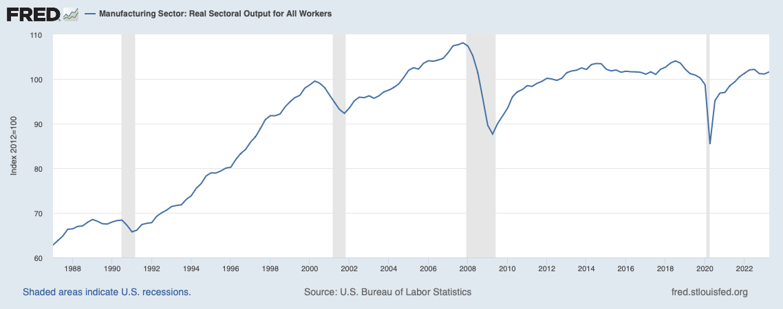 Now look at the second. The productivity of the US manufacturing sector. It's just a little off the 2007 peak.