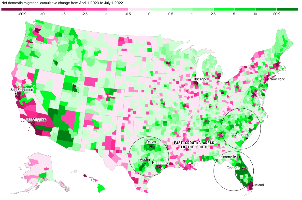 2) 2.2 million people moved to the Southeast in just over two years. That’s roughly the population of Houston: