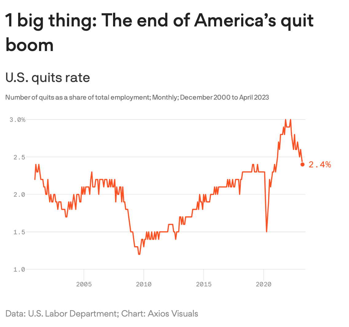 2) The Great Resignation is over, quit rates return to pre-pandemic levels: