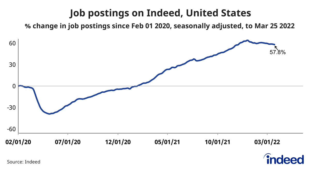 18) Job openings posted on Indeed appear to have peaked: