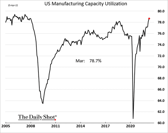 24) Factory capacity utilization hit the highest level since 2007: