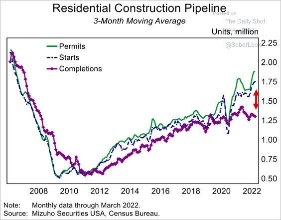 20) Housing starts have diverged from completions amid construction delays: