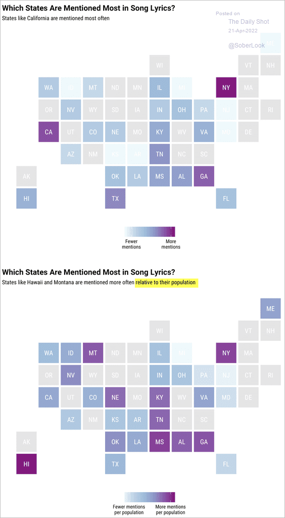 44) The states that Americans sing about most: