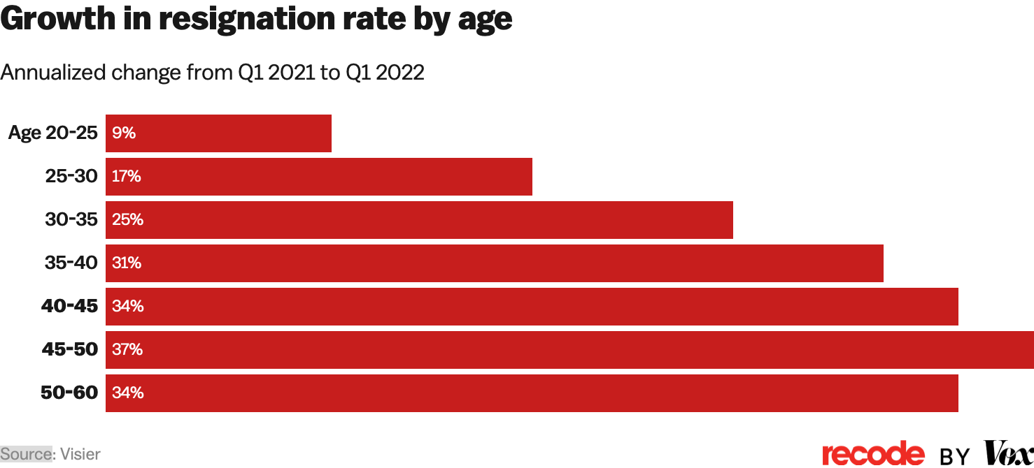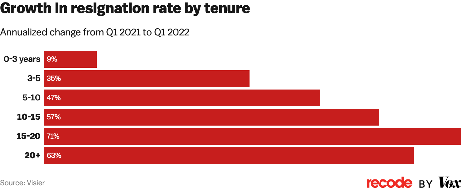 10) The Great Resignation is becoming a “great midlife crisis”: Older, more tenured people are increasingly quitting their jobs.