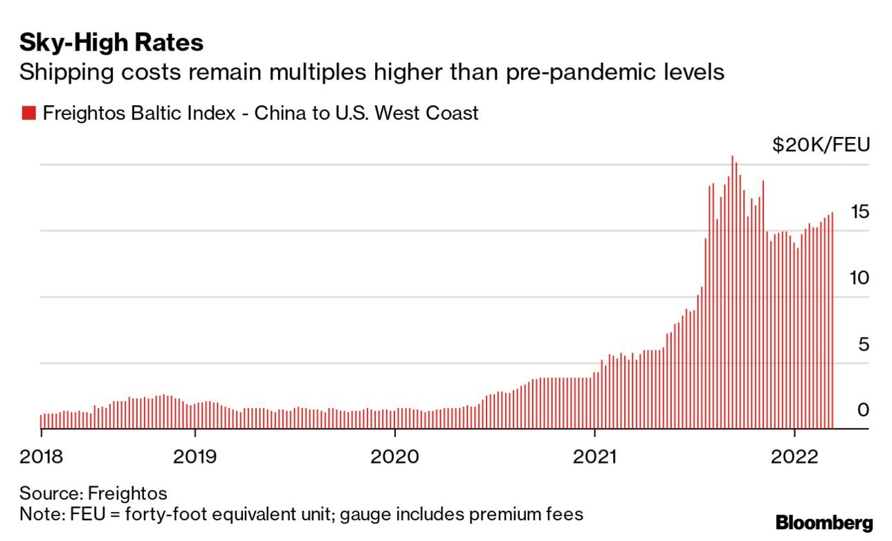 13) U.S. importers, straining under a tapped-out supply chain, are increasingly offering top dollar for long-term shipping contracts that may not even be honored as they try whatever it takes to guarantee the arrival of their products. The pandemic-driven boom in demand for goods pushed both contract and spot rates for shipping to records — getting merchandise from place to place costs about 11 times more than it did before the Covid-19 outbreak.