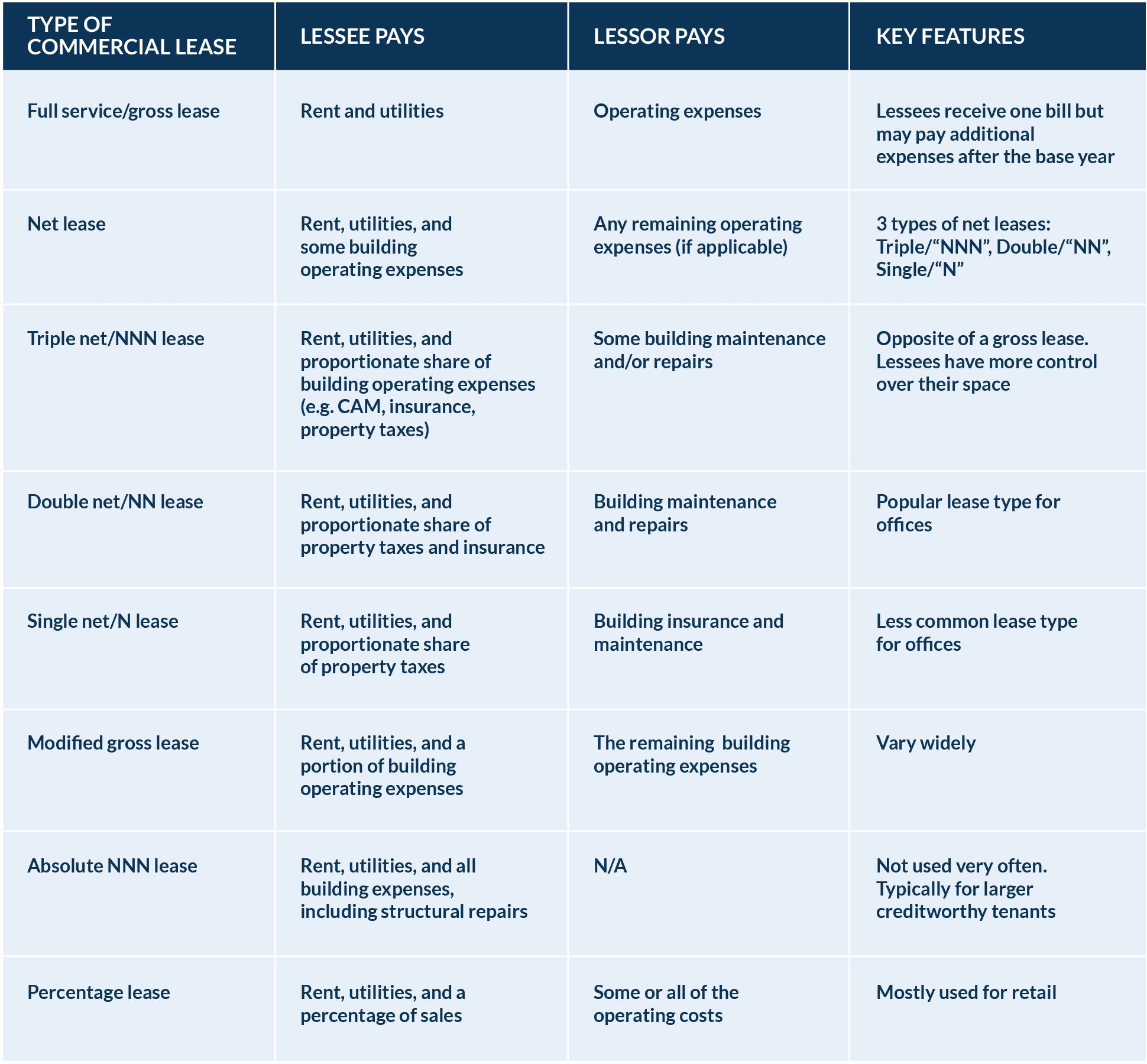 47) Commercial lease types explained: triple net, gross and more.