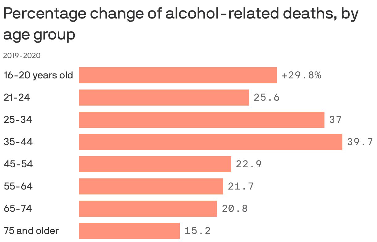 8) Alcohol-related deaths in the US rose 25% from 2019 to 2020: